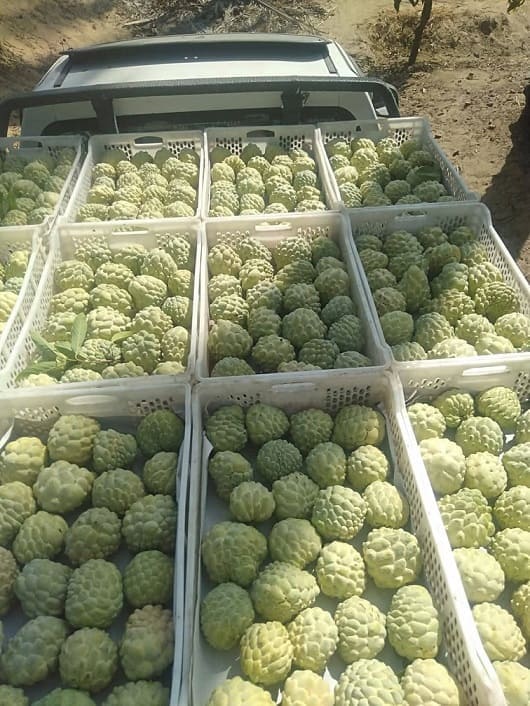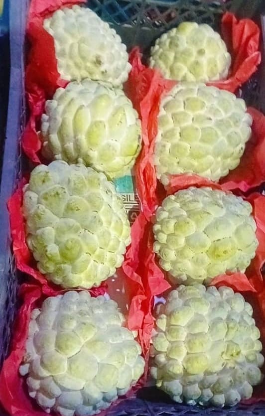 Custard apples are usually consumed as dessert fruit. The fruit is rich in starch when firm but increases softens markedly in sugar as it .sweet pulp which comes apart in segments each containing a shiny black seed. The more common Sugar Apple is green.